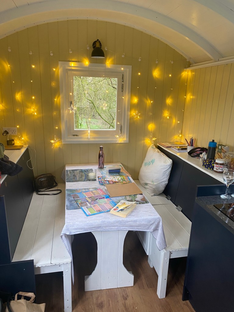 Inside its lovely and cosy.